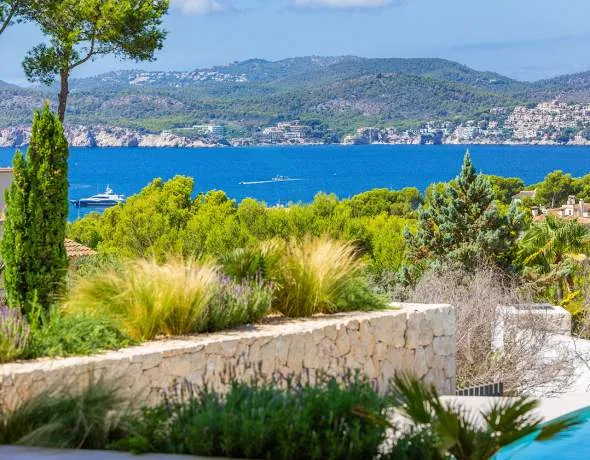 Located in one of the most exclusive villa urbanisations of Santa Ponsa, this stylish new-build villa is a modern retreat with high privacy. The tranquil residential area borders directly on a vast nature reserve, accessible via a permitted garden gate. At the same time, the location impresses with its proximity to the centre: three renowned golf courses and several marinas are in the immediate vicinity. The large sandy beach of Santa Ponsa, idyllic coves, sports and leisure facilities, as well as numerous shopping and dining options, are within few minutes by car.