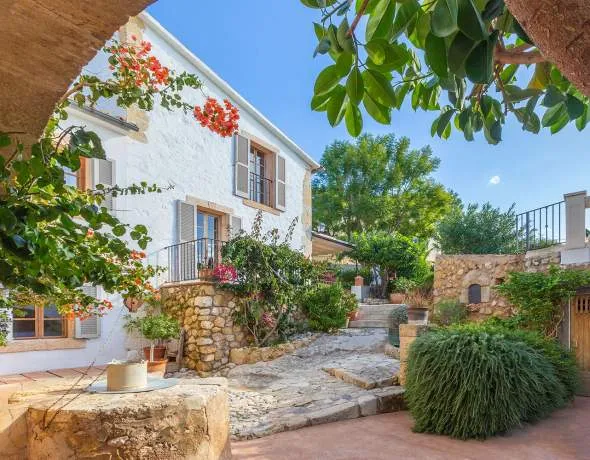 This exceptional villa is located in the privileged residential area of Bonanova and has been renovated with great attention to detail, preserving many traditional details such as the wooden beams and wooden fixtures. The main house offers a spacious living room with fireplace, a dining room with access to another cosy TV room and two guest WCs. A few steps down is the kitchen with utility room and another lounge and dining area with fireplace. On the first floor lies the spacious master bedroom with en-suite bathroom and a further bedroom suite. On the lower level is a bedroom with en-suite bathroom and additional access from outside. The outdoor area offers an inviting patio, a beautifully landscaped garden and a large swimming pool with sun terrace and barbecue area. From here you reach the separately accessible guest apartment with kitchen, bedroom and bathroom as well as another bedroom suite. There are several parking spaces available on the property.