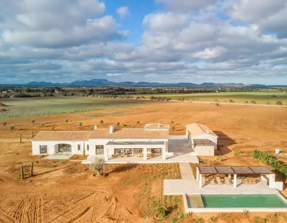 This exclusive new-build finca is situated in a privileged location, just a few minutes’ drive from the long, turquoise-blue natural beach of Es Trenc, nestled in the Mediterranean landscape near Sa Rápita. On a total of 56.5 hectares of land, there are six “possessions” – unique country estates that form an exclusive residential complex and allow you to experience the Mallorcan lifestyle to the full.