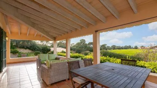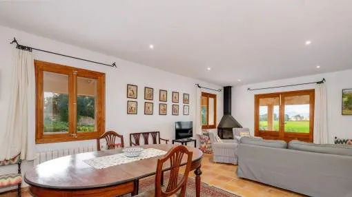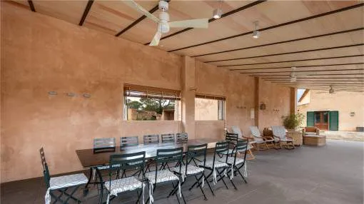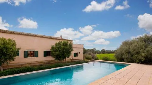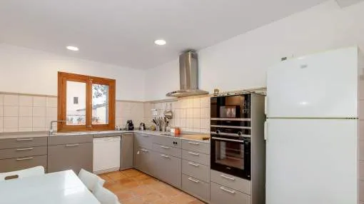 Details: This charming finca with wonderful views of the countryside is located just 200 m from the bay of Cala Blava, in a quiet area of Son Verí (Llucmajor). The surrounding area is characterized by small bays, Mediterranean nature and a pleasant neighbourhood, while Palma is just a few minutes' drive away - ideal for those who want to combine tranquillity with proximity to the city. An absolute highlight is the spacious outdoor area with plenty of privacy and Mediterranean flair. The spacious garden with pool, lemon and orange trees and several terraces invites you to relax. Particularly noteworthy is the separate, covered veranda with its own kitchen and barbecue area - perfect for socializing outdoors. The finca offers approx. 215 m² of living space with a bright living area and fireplace, separate kitchen, utility room and a total of 4 double bedrooms and 2 bathrooms. A large terrace extends the living space to the outside and creates flowing transitions between indoor and outdoor areas. The property can be rented on a long-term or seasonal basis and is ideal for families or those seeking peace and quiet who are looking for a finca with a spacious plot in a location close to the beach with plenty of nature and privacy. Pets are allowed. The monthly prices for seasonal rentals can be found in the table below. Prices for monthly seasonal rentals monthpriceJanuary€ 8,000.- February€ 8,000.- March€ 8,000.- April€ 8,000.- May€ 9,000.- June€ 11,000.- July€ 13,000.- August€ 13,000.- September€ 13,000.- October€ 8,000.- November€ 7,000.- December€ 7,000.- Location & surrounding area: Son Veri Nou is situated at the eastern end of the bay of Palma. It is a quiet residential village which consists mainly of villas. You find it on a rocky coast, it has a good infrastructure and within 15 minutes you can reach the airport and the beautiful city of Palma.