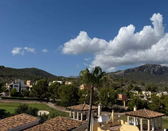 The open plan living and dining area is on the first floor and the modern fitted kitchen has a central cooking island. This level is very bright through the high and large windows enjoying wonderful views over the golf course and across to the Tramuntana mountains. There is also access to the roof terrace, from which you have a wonderful panoramic view over the roofs of Camp de Mar, the golf course and the sea. A summer kitchen invites you to enjoy the Mediterranean lifestyle outdoors.