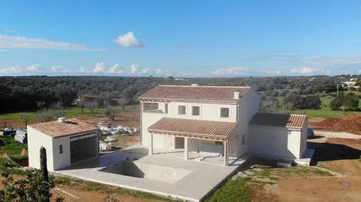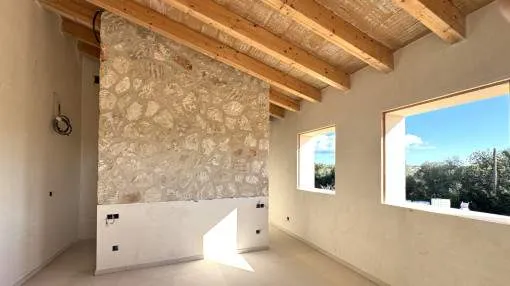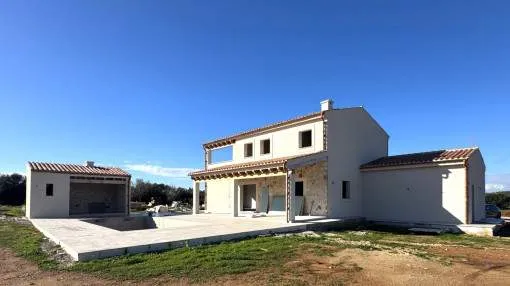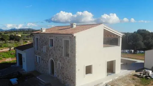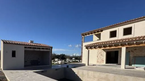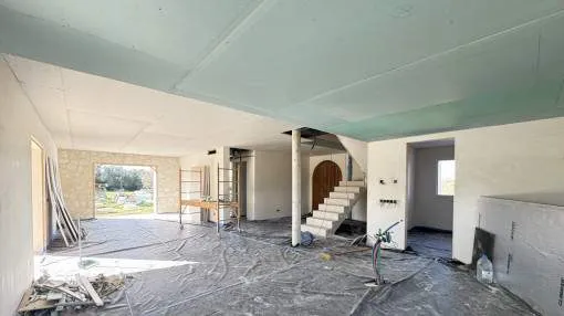 Details: This dreamlike, Mediterranean-modern finca in Ses Salines offers you the rare opportunity to participate in the final design and incorporate your personal wishes. Just 5 minutes from the picturesque village center and situated on a 20,800 m² plot, you can enjoy an exclusive retreat with fantastic views as far as Sant Salvador, Randa and the church of Ses Salines. Facts at a glance: Living space: approx. 250 m² Plot: 20,800 m² with idyllic almond plantation Rooms: 4 large bedrooms, 4 exclusive bathrooms, large living/dining room Outbuildings: BBQ house with shower room Pool: 32 m² swimming pool with heating and cover Comfort features: Air conditioning (hot/cold) Underfloor heating Fireplace for cozy evenings Natural stone floors for elegant flair Photovoltaic system for sustainable power supply Double-glazed windows for optimum noise protection and energy efficiency Further features: Wine cellar Garage and parking space Storage room and utility room Guest WC Spacious terraces and balcony Porch for relaxed outdoor hours GESA electricity and septic tank Top location and connections: Only 10 minutes to the most beautiful beaches of Mallorca Excellent restaurants nearby Palma de Mallorca airport can be reached in 35 minutes Shopping facilities for daily needs just 10 minutes away This finca combines the best of traditional Mediterranean charm and modern living comfort - a rare combination that leaves nothing to be desired. This property is a true dream come true that you should not miss out on. Contact us for more information and secure your personal piece of Mallorca! Returns from holiday lettings: For initial orientation you can use the “Porta Holiday Returns Calculator” without obligation to calculate your potential returns from holiday letting. NB: Due to the current legal situation it is possible that in certain municipalities renting restrictions may apply, or new touristic licences may not be granted. Your Porta Mallorquina real estate consultant will be pleased to advise you whether the property you have chosen is affected. Go to Returns Calculator. Location & surrounding area: Ses Salines is one of the nicest and oldest villages at the southeast coast. The image of the village is characterised by cosy bars and restaurants, where Majorcans and tourists have their “café con leche” while enjoying the sun. It is a typical Majorcan village that was named after its saline from the era of the Romans. Salt is reaped till this day. The “talaiots”, remains of a prehistoric settlement are also historically very interesting. Many small bays as Cala Llombards or the dreamlike natural beach of Es Trenc is only a short drive away. You can also discover the beautiful flat landscape by bicycle.