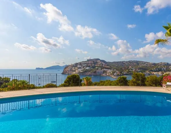 This Mediterranean villa in Port Andratx combines elegant design with stunning views of the harbour and the open sea. The mint condition and a thoughtful layout make this property a unique retreat in the southwest of Mallorca.