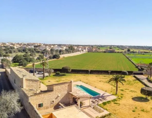 The natural preserve of Mondragó is nearby offering numerous routes for hikers, whereas the idyllic bays at the east coast, as Cala Santanyí or Cala Llombarts are perfect for bathing. The harbour of Portocolom and the golf course of Vall d’Or are at a short distance.