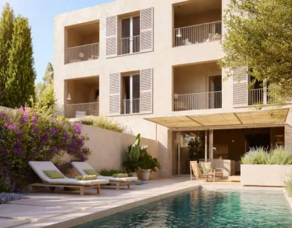 A high-quality new construction project with 2 exclusive townhouses is being built in the town center of Santanyí. Construction is scheduled to start in February 2026. The location impresses with its tranquillity in a cul-de-sac and at the same time with its immediate proximity to the plaza and the historic town center.