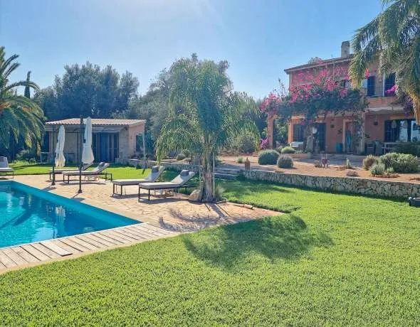 Description This finca is situated in a quiet location near Ses Salines and offers wonderful views over the surrounding countryside. The approx. 18,000 sqm plot boasts an ingrown garden, mature trees and numerous idyllic retreats.