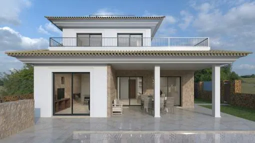 The house is situated on 3.374 m2 of land in the small and most attractive hamlet of Ses Alqueries near the village of Santa Eugenia, about 20 minutes from Palma. The constructed area of the property has been completely renovated and carefully restored during the last few years, preserving the old character of the mill and combining traditional and modern elements. This charming home is surrounded by a lovely flat garden with beautiful patios and terraces to enjoy the outdoors during all seasons, a large 12x5 metre salt water swimming pool, a pond adorned with water lilies and a fountain. The property retains its original character and the mill tower remains as it was a few hundred years ago. The layout of the main house is as follows: a large covered porch to the entrance area, inside a reception hall, a fitted kitchen, a dining room, a living room, 3 bedrooms, 2 bathrooms and a wine cellar. There is an additional room with a separate entrance, which can be accessed from the porch with lovely views to the garden, currently an office. On the first floor is the master bedroom with en suite bathroom. The separate guest house has a living room, a kitchen, 2 bedrooms and 1 bathroom. The house has one of the first holiday rental licenses with unlimited validity. This period property has a professionally landscaped garden, antique natural stone and terracotta floors, central heating, air conditioning, solar system and approved permission for a well. There are many fascinating original features throughout the property, including the original mill tower with capell and blades. This unique piece offers a lot of privacy in Mallorca, enjoys sweeping views over the Mallorcan countryside and the idyllic village of Santa Eugènia. Please do not hesitate to contact our sales team for more information and to arrange a viewing of this magnificent property.