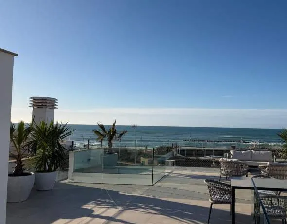 With a total constructed area of approximately 360 sqm, the duplex offers three spacious bedrooms, each with its own en-suite bathroom, as well as a guest toilet. The bright and airy living-dining area features an open-plan kitchen with a central island, creating a perfect space for both everyday living and entertaining. A fireplace in the living room adds warmth and character. The property is equipped with air conditioning (hot and cold) and central heating for year-round comfort.