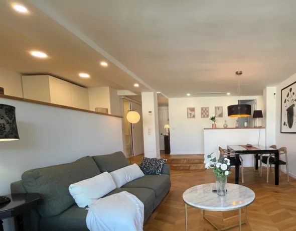 Discover this beautifully renovated 2-bedroom, 2-bathroom apartment featuring an open-plan kitchen seamlessly connected to a bright living area and access to a spacious terrace, perfect for enjoying the Mediterranean climate. The property stands out for its high-quality finishes, tasteful décor, and inviting atmosphere. It also offers a communal swimming pool and private parking. Available for short-term rental, with a maximum stay of 1 year.