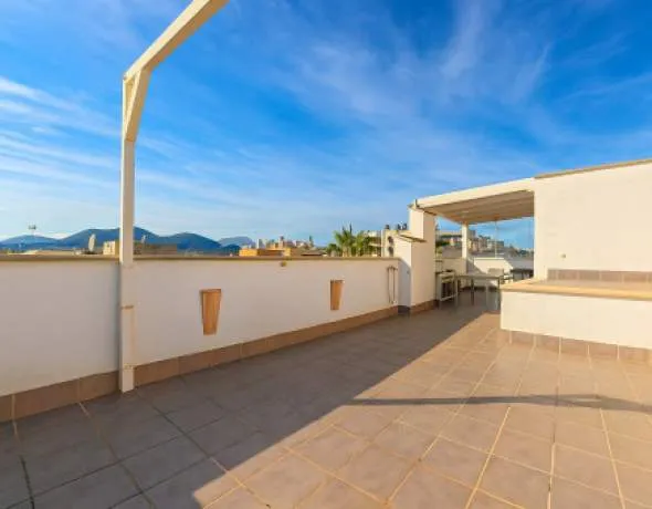 This modern apartment is located on the third floor of a residential building with lift, right by the port of Puerto de Alcúdia. A true highlight is the private rooftop terrace, featuring a beautifully arranged lounge area and stunning panoramic views of the surroundings.