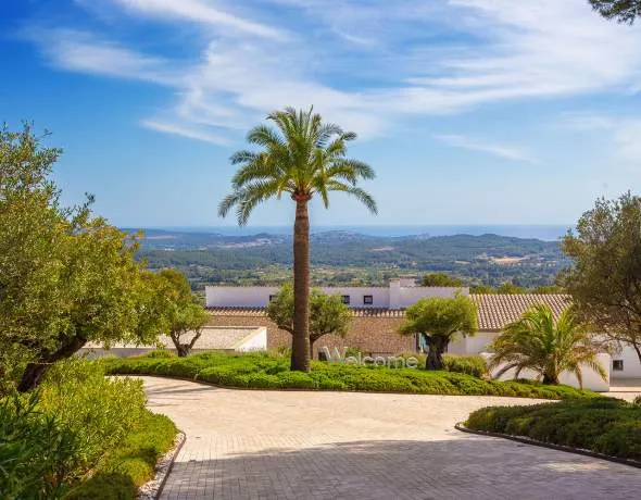 High above the picturesque village of Calvià, in the exclusive villa urbanisation of Son Font, this exceptional property is set on a plot of approx. 30,000 m², nestled in an idyllic mountain landscape. The centre of Calvià can be reached in just five minutes by car, while Palma and the coastal towns of the southwest—with their beaches, marinas, and golf courses—are only about 20 minutes away.