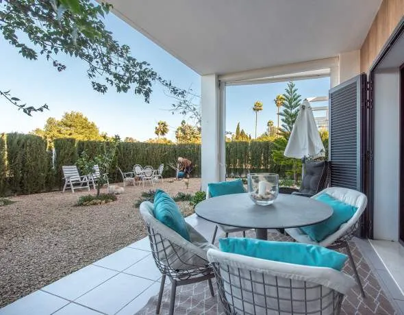 This modern first floor apartment is located in a well-kept residential complex in Cala Murada. The apartment has a private, low-maintenance garden of approx. 124 m², which offers a pleasant degree of privacy.