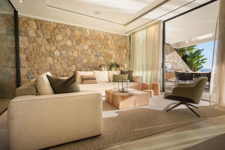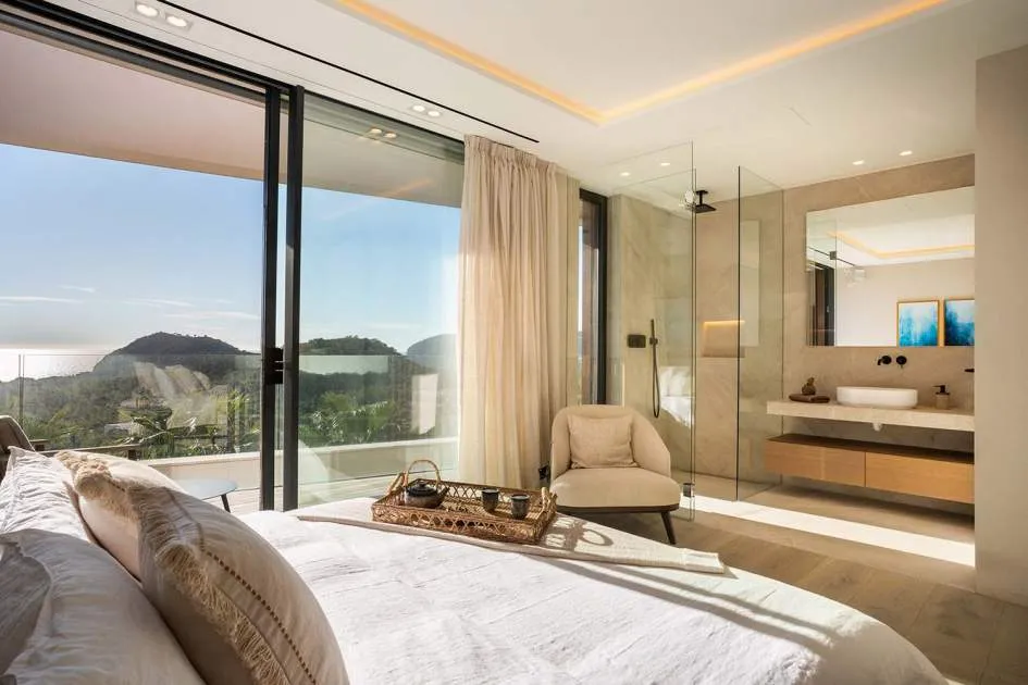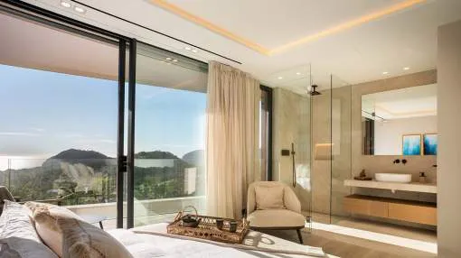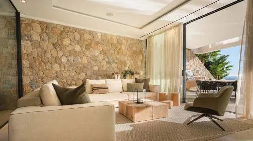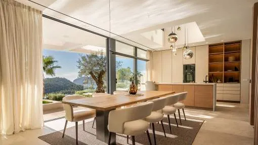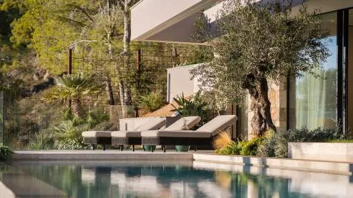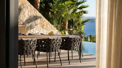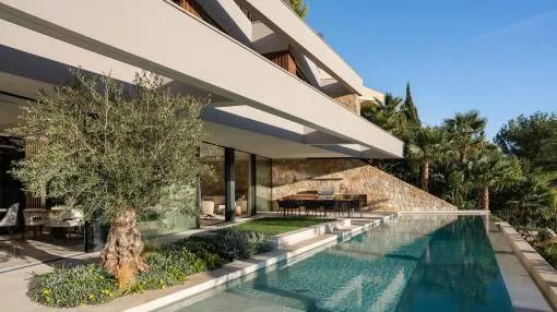 In a privileged location, right on the edge of a nature reserve, this outstanding designer villa rises with an incomparable view overlooking the coastline from Camp de Mar to Santa Ponsa. The elevated position not only ensures maximum privacy and absolute tranquility, but also offers unobstructed views of the sea and surrounding nature – from every living area.