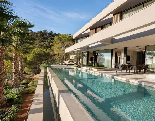 In a privileged location, right on the edge of a nature reserve, this outstanding designer villa rises with an incomparable view overlooking the coastline from Camp de Mar to Santa Ponsa. The elevated position not only ensures maximum privacy and absolute tranquility, but also offers unobstructed views of the sea and surrounding nature – from every living area.