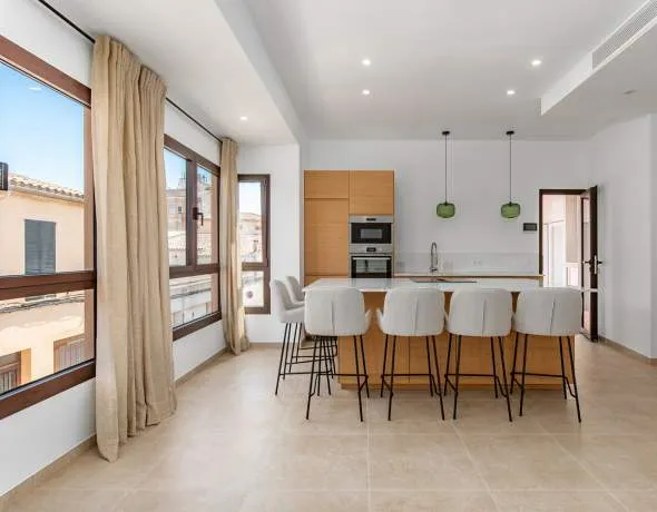 Description This stylish townhouse extends over three floors and impresses with its clear lines, fine materials and intelligent room layout. Centrally but quietly located, it is situated in a side street in the heart of Campos.
