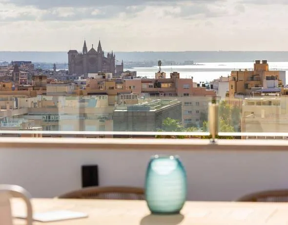 A standout feature is the spacious rooftop terrace, offering sweeping panoramic views over Palma, the cathedral, and the sea. The terrace includes an outdoor shower and pre-installation for a summer kitchen.