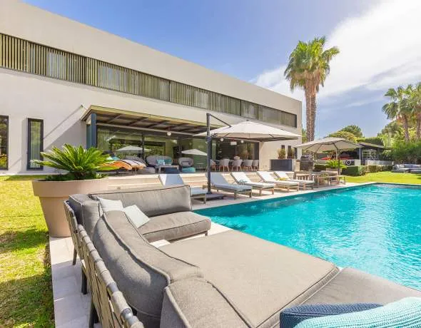 This modern, light-filled villa is located in one of the most exclusive residential areas of Santa Ponsa – in a quiet location, adjacent to a green area, yet only a few minutes’ walk from the Club Náutico and less than two kilometres from the town centre. Several sandy beaches, renowned golf courses, and additional marinas are just a short drive away. Thanks to the nearby motorway access, there is excellent access to Palma, the airport, and the entire southwest of the island. Santa Ponsa also offers an excellent infrastructure with numerous shopping and leisure options.