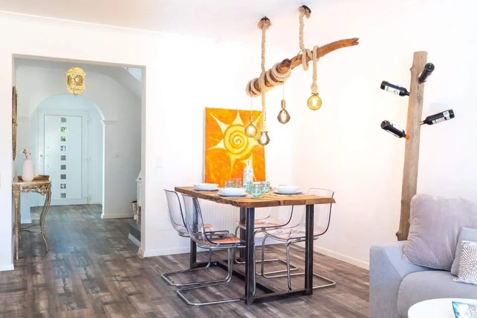 The approx. 134 square metres of living space is spread over two levels with a well thought-out room layout that perfectly combines comfort and stylish living. The ground floor features a bright entrance area, a cosy bedroom, a modern bathroom, which also serves as a practical guest toilet, as well as the living/dining room and the fully renovated fitted kitchen, which is equipped with first-class electrical appliances.