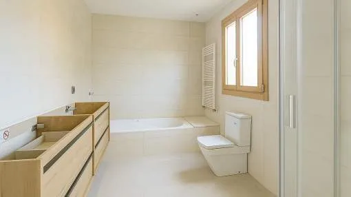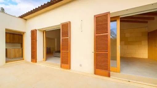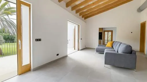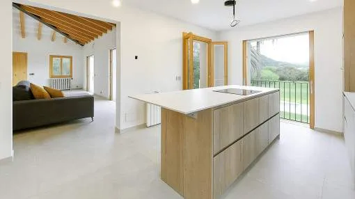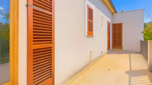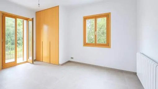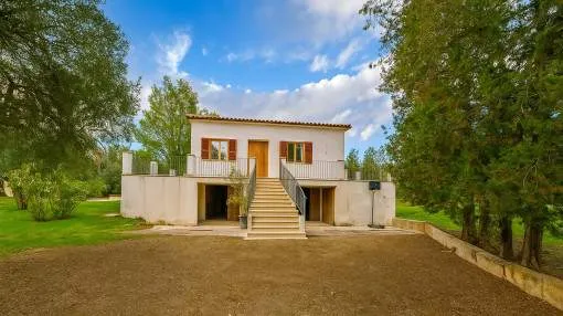 Details: This charming finca is located on a plot of around 4,380 sqm in the immediate vicinity of the old town of Pollença and combines easy access to the town with a high degree of privacy. The 2-storey main house impresses with its modernized upper floor - the actual living level. Here there are 3 spacious double bedrooms, all with fitted wardrobes and direct access to the terrace, as well as 3 bathrooms, two of which are en suite. The spacious living room opens onto the large sun terrace with wonderful views of the pool and the Puig de Maria. Right next to it is the bright, inviting kitchen, from which you can access the basement. This houses 2 machine rooms as well as generous areas for individual use - whether garage, hobby room, fitness area or chill-out zone, there are no limits to the imagination here. The equipment includes oil central heating, centralized air conditioning and double glazing, which guarantees a pleasant living climate all year round. The finca has mains electricity and well water. The construction is completely legal and the vacation rental license for six people is still valid and does not need to be renewed. Another highlight is the small outbuilding on the edge of the plot, which is already equipped with electricity and water connections and offers potential for expansion. This property is ideal for anyone who appreciates comfort, privacy and being close to the town of Pollença. Returns from holiday lettings: For initial orientation you can use the “Porta Holiday Returns Calculator” without obligation to calculate your potential returns from holiday letting. NB: Due to the current legal situation it is possible that in certain municipalities renting restrictions may apply, or new touristic licences may not be granted. Your Porta Mallorquina real estate consultant will be pleased to advise you whether the property you have chosen is affected. Go to Returns Calculator. Location & surrounding area: Pollensa, known by insiders as the "second capital" of the island, emanates a very special, even princely charisma. At the northern foothills of the Tramuntana mountain range, this romantic town offers a mountain panorama around the mountain Puig de Maria, which is the hallmark of this region. A rich, especially musical cultural activity offering and unique top real estate records, such as along the Calvario (Calvary) in the centre, or the peaceful classy residential district of La Font on the mountainside, and a stunningly beautiful rural setting on the adjacent valleys Vall d' en March, Vall D' Colonya and Vall D' Aixartell give this spot an incomparable charm. There is many a gem on offer which, along with a modern infrastructure is ideal for the perfect vacation property. Also for lovers of the traditional Majorcan town house, Pollensa is just the place - there are lots of properties to discover which have either already been completely renovated, or still have enough space for extra development.
