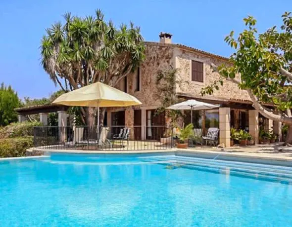 The main house exudes genuine Mallorcan character: natural stone façades, warm wooden elements and stylish, rustic details create an atmosphere full of elegance and security. Inside, you will find spacious rooms, a light-flooded living area with a fireplace, impressive arches and natural stone pillars as well as an open, inviting living structure.