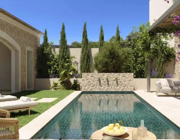This exclusive townhouse is being built in the heart of Ses Salines and combines modern architecture with a Mediterranean lifestyle. On a plot of approx. 387 sqm, a stylish home is being created that impresses with clear lines, generous room proportions and a well thought-out living concept. The charming market square of Ses Salines as well as numerous cafés and restaurants are within walking distance.