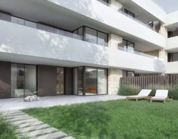 The bright ground floor apartment has 143 sqm of interior construction space and 157 sqm of exterior space, an open-plan living and dining area with access to the terrace, a kitchen fully equipped with Siemens appliances, 4 bedrooms and 2 bathrooms, one of which is en suite. An underground parking space and a cellar room can be acquired for each apartment.