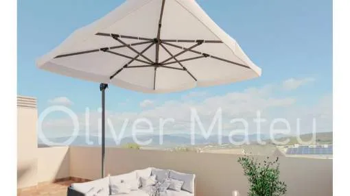 New project. First floor flat located in the Son Forteza area. Very well connected to the highway. It has 2 bedrooms and two bathrooms with a 20m² terrace on the roof of the building. Furnished kitchen, warm/cold air conditioning, white aluminum windows with thermal break, built-in wardrobes. Very good finishes. The completion of the work is scheduled for July 2026. Building with only 3 units.