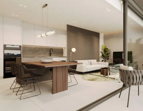 This extraordinary urban project is being built in the eastern part of Palma de Mallorca, near Portixol and the famous city beach, as well as within walking distance to the impressive old town. Thanks to its location only 10 minutes drive from the airport, it is ideal for commuters and travellers. Particularly noteworthy and hardly comparable to other projects in Palma are the architecture and design of this development. The entire building technology is aimed at ecological sustainability. Floor-to-ceiling glass fronts offer spectacular views and a lot of natural light. Electric panoramic windows can be lowered horizontally and thus combine perfectly the exterior area with the interior. You can choose between different design lines and upgrade packages that will meet not only high, but also very special requirements. The communal areas with gym, sauna, oversized swimming pool and spacious terraces also enjoys a luxurious design. Despite the size and urban character of the development, the Mediterranean gardens offer a tranquil and natural atmosphere. In total, the project has 84 deluxe apartments. In addition, there are 4 commercial units on the ground floor for property-related service providers as well as for gastronomy. There will also be a concierge service. We would be happy to present this project to you. Do not hesitate to contact one of our FIRST MALLORCA real estate agencies.