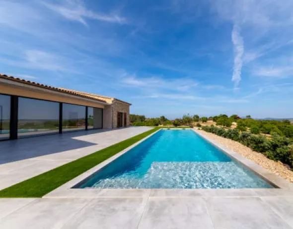 This charming, newly-built finca stands on a large plot of 42,000 sqm and offers breathtaking views of the surrounding countryside. Its location is ideal for those seeking tranquility and privacy without foregoing the amenities and convenience of village life, as the centre of the village of Sineu with its shops, restaurants and other facilities is within easy reach..