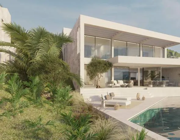 This architectural masterpiece is perched high on an elevated hillside plot enjoying captivating panoramic sea and mountain views. Due for completion in 2026 the property has an open plan, modern design throughout with a feature fireplace and floor to ceiling sliding doors which access the extensive terraces and generous infinity swimming pool.