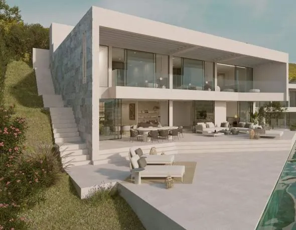 This elegant villa is set in a priviledged location and constructed on a 1,138 m2 plot with a living space of approximately 547 m2. The property in due for completion at the end of 2026 and enjoys a south east orientation, wonderful sunrises and lots of sunlight all day long. Designed with an open plan distribution, luxury kitchen with high quality appliances, floor to ceiling glass windows, a cozy fireplace and is constructed on three floors with a lift to all levels. The infinity swimming pool and surrounding terraces blend into the horizon beyond.