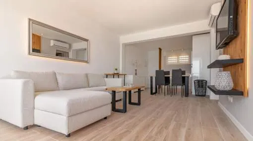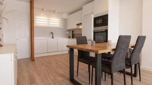 This beautiful rental apartment has 2 bedrooms, a modern bathroom, fully equipped kitchen, living room and terrace with sea views. Fully furnished, with air conditioning and electrical appliances. Very quiet area, just a few meters from the beach, with all kinds of services in the area. Mínimum rental period of 6 months.