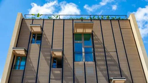 Parallel East & West' presents itself with 2 innovative buildings, each with 6 luxury flats, which optionally have a private swimming pool, their own garden or a protected roof terrace with panoramic views over the bay of Palma, Cala Major and Illetas.