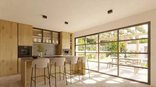 Details: In the picturesque area of Cala Figuera, just a short walk from the sea, an exceptional residential property is being planned. The project combines traditional Mediterranean architecture with contemporary design and state-of-the-art technology and is offered for sale directly by the developer on a turnkey basis. The villa is planned on a plot of approximately 1,000 sqm and will offer around 280 sqm of living space. The well-designed layout features generous indoor and outdoor areas, an infinity pool with spacious sun terraces, elegant BBQ and lounge areas, and a carefully landscaped Mediterranean–tropical garden with automatic irrigation. One of the highlights is the expansive rooftop terrace with jacuzzi and lounge area. Additional features include a versatile multi-purpose room, a refined wine cellar, and 2 fully equipped kitchens. Smart home technology, underfloor heating with an air-source heat pump, a photovoltaic system, and an automatic gas fireplace ensure modern comfort combined with sustainable energy efficiency. The spacious master suite includes a private sun terrace, a freestanding outdoor bathtub, and an outdoor shower, creating a seamless connection between interior and exterior living. Planning, design, and full project management are carried out by the developer. Turnkey purchase price: €4.0 million Returns from holiday lettings: For initial orientation you can use the “Porta Holiday Returns Calculator” without obligation to calculate your potential returns from holiday letting. NB: Due to the current legal situation it is possible that in certain municipalities renting restrictions may apply, or new touristic licences may not be granted. Your Porta Mallorquina real estate consultant will be pleased to advise you whether the property you have chosen is affected. Go to Returns Calculator. Location & surrounding area: The enchanting fishing village of Cala Figuera is hidden among cliffs, pines and fig trees at the end of the bay of the same name. The facades of the fishermen's houses and boathouses are white and ochre in colour. The strong green of the shutters forms a striking contrast to the bright buildings. Many fishermen's houses have a terrace on the water side, under which there is a boat shed. The typical Majorcan architecture predominates, with palm trees, hibiscus and almond trees in the gardens. Light-coloured stone walls form the boundary and on the stone terraces cats doze under the shady crowns of the umbrella pines. When the fishermen are not at sea, they sit together in small groups at the harbour or they mend their nets. In Cala Figuera the Balearic Island has kept its original face. At the end of the left sea arm is the idyllic port of Cala Figuera. Wooden fishing boats bob on the water next to sailing boats and motor yachts. In the port restaurants freshly caught fish and seafood are served. The restaurant owners buy the goods directly from the fishermen. On one of the many waterfront restaurant terraces you can enjoy Mallorcan delicacies and watch the leisurely hustle and bustle on the harbour quay. The fishermen's nets hang to dry in the sun or pile up on stone walls. Santanyí The historical Santanyí, which is only about 4 km away, offers the contrast program. Here every Wednesday and Saturday lively market days take place. Beautiful high-quality boutiques and galleries invite you to shop. Beaches Outstanding are the nearby fine sandy beaches in the Mondrago nature reserve.