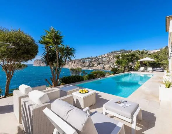This exceptional luxury property impresses with its timelessly elegant architectural lines and is located in Cala Llamp, one of the most sought-after residential areas of the exclusive harbour town of Port Andratx – directly by the sea and offering panoramic views of the impressive coastal landscape.
