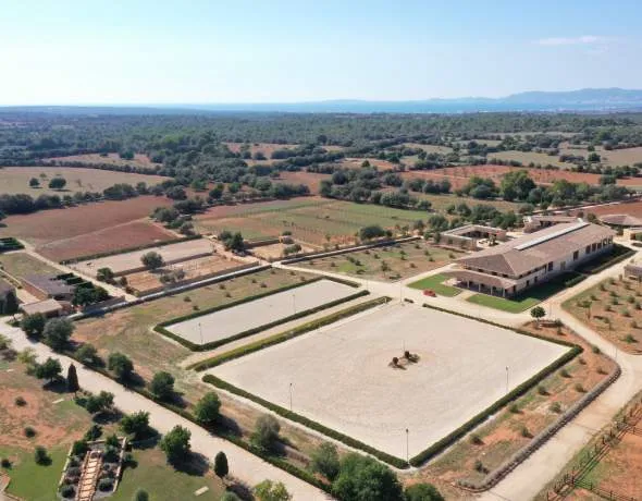 This exceptional property extends over a plot of around 32 hectares and offers absolute privacy as well as breathtaking panoramic views of the Tramuntana mountains near Llucmajor, just 15 minutes from Palma. The country estate combines luxury, comfort and versatility and is suitable as a private residence, retreat or hotel business.