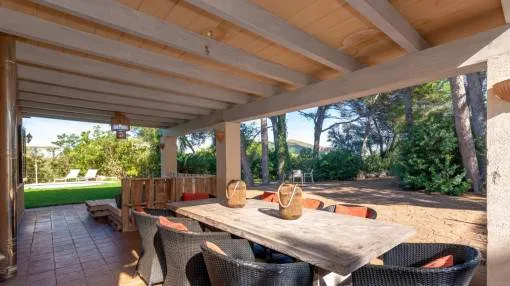 Details: This finca ensemble in the northeast of Mallorca stands out due to a structure that is rarely found on the market: two fully independent houses on one continuous plot. A setup that offers clear and flexible usage possibilities for both private owners and investors. Set on approximately 27,800 sqm of land with a gentle slope, the property comprises two separate units, each with its own access, pool, terraces and garden. The layout allows for parallel use without limitations, whether as a private residence, a multi-generational property or a combination of personal use and rental income. Cala Agulla can be reached in around ten minutes on foot. Capdepera and Cala Ratjada, with their harbour, restaurants and infrastructure, are just a few minutes away. Several golf courses are also within easy reach. Three separate access roads ensure a high level of privacy. Each unit has its own entrance, complemented by an additional access for staff. The park-like grounds, with their own deep well, offer open views and partial sea views. The main house offers approximately 600 sqm of constructed area and around 438 sqm of living space. Generous room layouts, high ceilings and large windows create a bright and open living environment. Six double bedrooms, six bathrooms (four en suite), two kitchens and several terraces provide ample space for a variety of living concepts. The existing structure also allows for the creation of up to five independent living units within the main house. The separate guest house, with approximately 160 sqm of constructed area, complements the property with an independent unit featuring a living and dining area, kitchen, two bedrooms and two bathrooms, as well as private terraces and its own pool. Air conditioning, oil central heating and a pellet system allow for year-round use. What defines this property is the combination of two independent units, separate access points and a clearly structured layout. Returns from holiday lettings: For initial orientation you can use the “Porta Holiday Returns Calculator” without obligation to calculate your potential returns from holiday letting. NB: Due to the current legal situation it is possible that in certain municipalities renting restrictions may apply, or new touristic licences may not be granted. Your Porta Mallorquina real estate consultant will be pleased to advise you whether the property you have chosen is affected. Go to Returns Calculator. Location & surrounding area: You can recognize Capdepera from far away because of its castle and the medieval buildings which are inside the castle walls. A widely known medieval market takes place every year which is worth a visit. To the municipality of Capdepera belong also the villages Cala Ratjada, Cala Mesquida and Canyamel