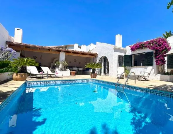 The property features a private swimming pool, a fully equipped outdoor kitchen, and a comfortable chill-out area perfect for entertaining or unwinding.