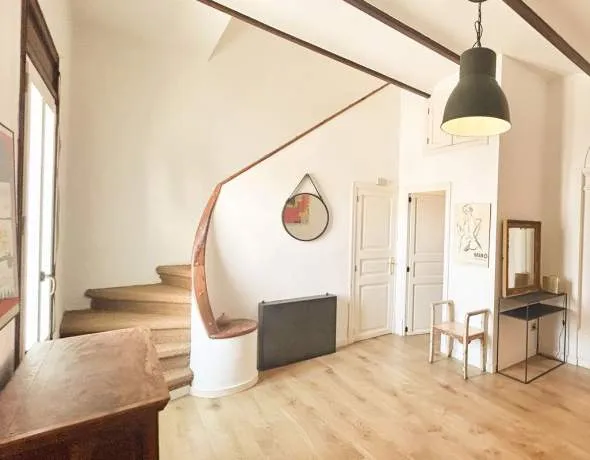 Additional features include high ceilings with exposed beams, multiple terraces, abundant natural light, and a nearby parking space.