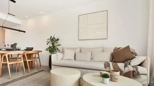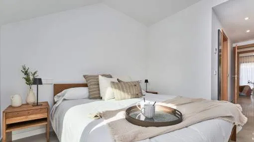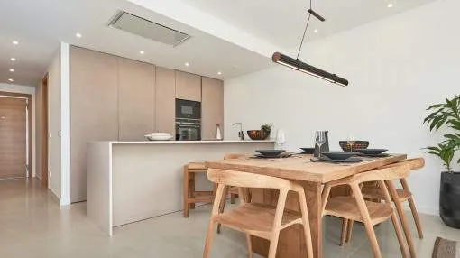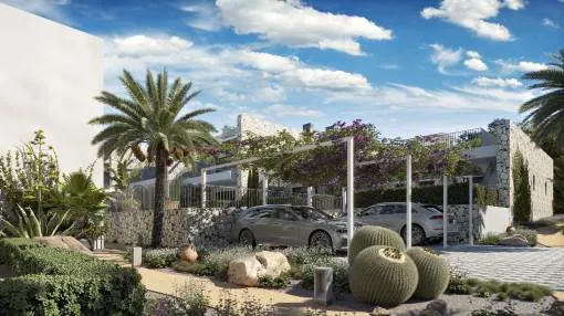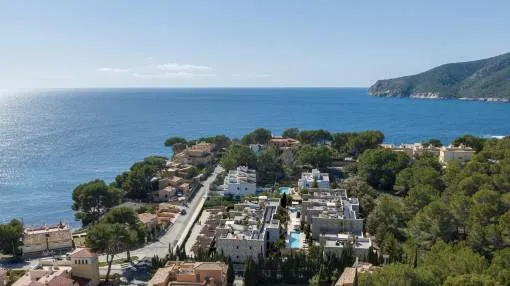 Details: In a dreamlike location in Sant Elm, one of the most charming coastal villages in southwest Mallorca, an exclusive residential complex with only 20 units is being built – surrounded by Mediterranean nature, facing the island of Dragonera, and overlooking the turquoise sea. Sant Elm enchants with its Ibiza-like flair, small restaurants, charming shops, and a peaceful, laid-back atmosphere. Here, you can enjoy the authentic Mallorca – full of natural beauty and character. Special highlights of the garden apartment include walking distance to the beach, energy efficiency class A, and a clean, Mediterranean design that seamlessly connects indoor and outdoor spaces. The surrounding pine forests and coastal paths offer pure relaxation in nature. The high-quality new development consists of 8 penthouses, 8 garden apartments, and 4 duplex units with private gardens and rooftop terraces. It features spacious outdoor areas, a stylish communal pool, private carports, and is being developed by a renowned builder with great attention to detail. The architecture focuses on natural tones, lightness, and durability – in perfect Mediterranean elegance. This garden apartment offers approx. 91,84 sqm of constructed interior space with 3 bedrooms and 3 bathrooms, two of which are en suite. The bright living-dining area with an open-plan kitchen opens onto a 20,35 sqm terrace. A highlight is the direct access to the idyllic generous garden of 29,71 sqm. Features include: Silestone countertops & Siemens appliances, underfloor heating in the bathrooms, solid wood doors, anthracite aluminum double-glazed windows, floor-level terrace doors, electric shutters in the bedrooms, tile flooring indoors & outdoors, air-to-air heat pump climate system with integrated vents, and LED lighting package. Further units of this project: referenceconstructed areabedroomsfloorprice122309B112 m²30€ 875,000.- 122309C112 m²30€ 875,000.- Location & surrounding area: Sant Elm is surely one of the most flourishing areas on the island, and in the simple former fishing village an exceptionally pleasant flair has been created. It has a population of only 500 and so is very suitable to be visited for a tranquil bathing and hiking holiday. Views over the bay are dominated by the 4 km long island of Dragonera, which rises out of the water like a sleeping dragon. Famous for its fresh delicacies and incredible sunsets, Sant Elm also offers the possibility to live privately but without having to forego convenient access to well-known places. Only 10 minutes drive away, for example, is the popular harbour of Port d'Andratx, and the island-capital Palma can be reached within 30 minutes.