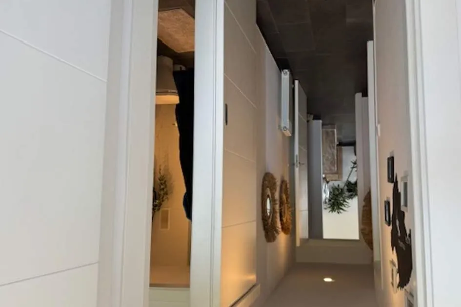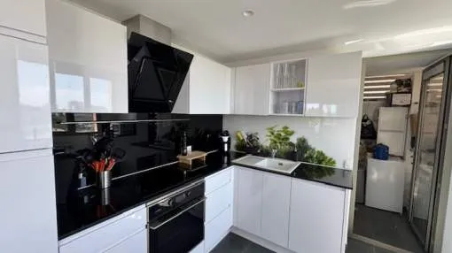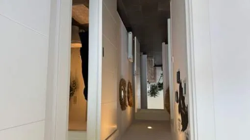 This elegant residential complex with several pools is located just outside Cala Millor and was built only a few years ago. The beach and the cafés, restaurants and shops of Cala Millor are about a 10-minute walk away. The property impresses with its spacious living area, large terrace, south-facing orientation and side sea views. The flat is available for rent immediately, both for short periods and with a long-term rental contract. • Three bedrooms, one with en-suite bathroom • Two bathrooms • Open-plan high quality Nolte kitchen • Large balcony • Storage room and underground parking space included • Air conditioning and central heating in every room • Aluminium windows with shutters and insect screens • Three communal pools including children's pool