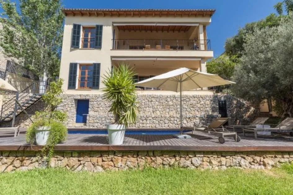 Details: This enchanting villa is situated on the outskirts of Calvia village, surrounded by olive and pomegranate trees in a beautiful garden and offering great tranquility and privacy - a true paradise for every Mallorca enthusiast. Highlights are provided by the wonderful views of the village and the breathtaking panoramic views of the sea and the mountains. Standing on a plot of 600 sqm, the property has a constructed area of 250 sqm comprised of 4 bedrooms, 3 bathrooms, 2 of which are en-suite, a guest WC, and an open living/dining area with an adjoining kitchen. An absolute highlight are the large covered terraces accessible from various rooms, from where fascinating views of the mountains, the sea, and the village of Calvia can be enjoyed. The garden area with private saltwater pool and chill-out area invites to spend relaxing time in the summer months with family and friends, and from the pool there is access to a sauna and a storage room. This exceptional villa was completely renovated in 2020 and fitted with a photovoltaic and solar thermal energy system. It also features a carport equipped with an E-charger for electric cars. An additional feature is the valid touristic rental licence, making the property very interesting for investors. Returns from holiday lettings: For initial orientation you can use the “Porta Holiday Returns Calculator” without obligation to calculate your potential returns from holiday letting. NB: Due to the current legal situation it is possible that in certain municipalities renting restrictions may apply, or new touristic licences may not be granted. Your Porta Mallorquina real estate consultant will be pleased to advise you whether the property you have chosen is affected. Go to Returns Calculator. Location & surrounding area: Calvià is an area located at the foot of the Tramuntana mountains, and was formerly an important village. Today it profits by tourism because of the proximity of the popular coastal villages. It is one of the most important communities of Spain. Places like Costa d’en Blanes, Illetas, Magalluf, Paguera and Santa Ponça are all part of the municipy of the district of Calvià.