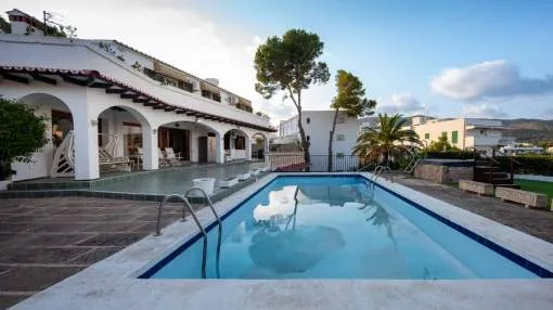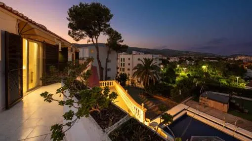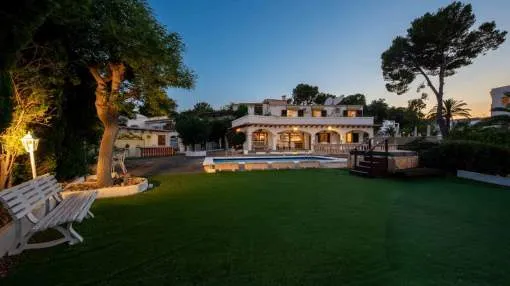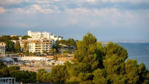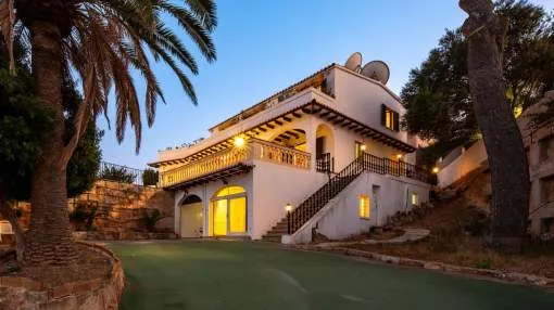 A rare gem in Palmanova: this exceptional south-facing villa sits on one of the most sought-after plots atop the hill, offering breathtaking sea views and an unbeatable central location. Just a short stroll from the golden beaches, shops, and restaurants, this property combines tranquility, convenience, and prestige.