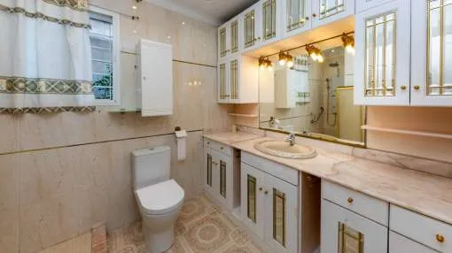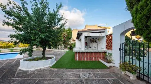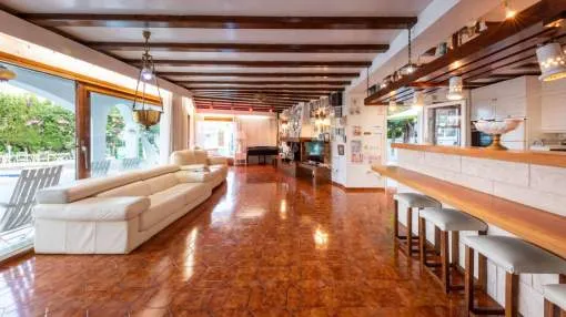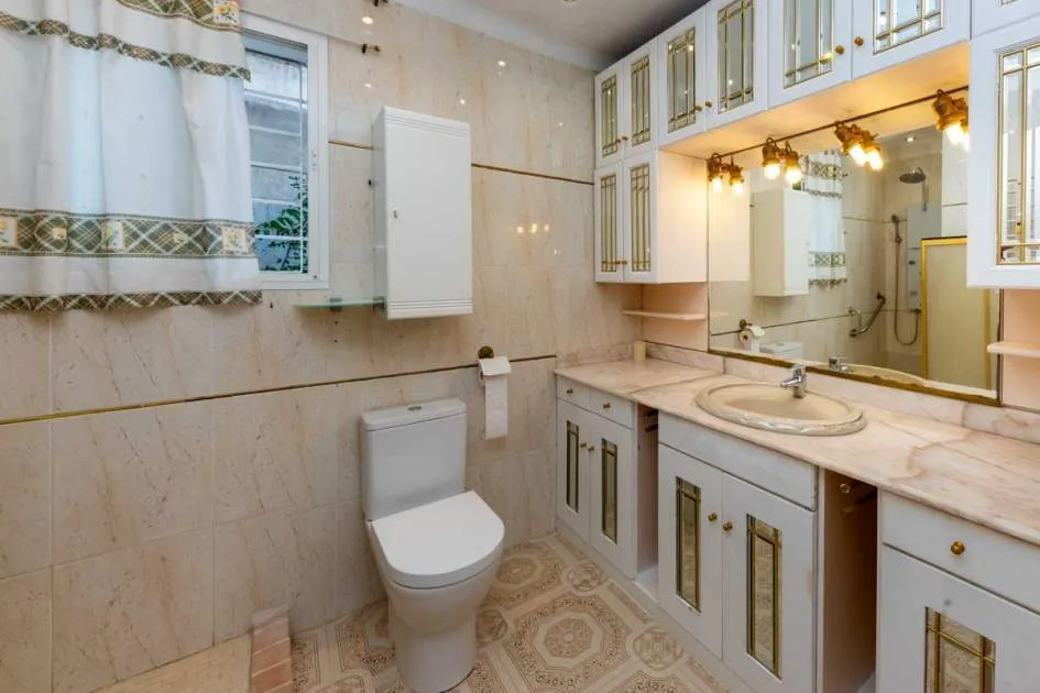 Tucked away in a quiet residential street, the villa boasts a generous layout with an open-plan kitchen, living, and dining area on the ground floor, perfect for hosting family and friends. Large sun-drenched terraces surround a private pool and covered BBQ area, ideal for enjoying Mallorca’s year-round outdoor lifestyle.
