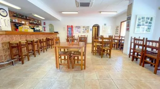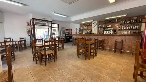 This commercial property for rent occupies a corner of a lively street, very close to the old town. It has a surface area of approximately 120m2 and a terrace at street level with capacity for 4 tables. It has a bar/café licence.