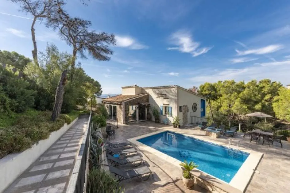 Rustic country villa with great potential, sea views and pool in Costa d'en Blanes