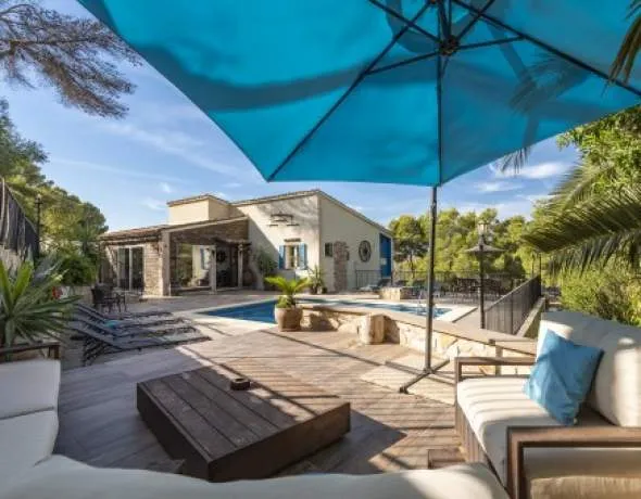 This enchanting and very charming villa with sea views is situated in the exclusive and very desirable residential area of Costa den Blanes, only a few minutes from the prestigious marina of Puerto Portals and 20 minutes drive from Palma.