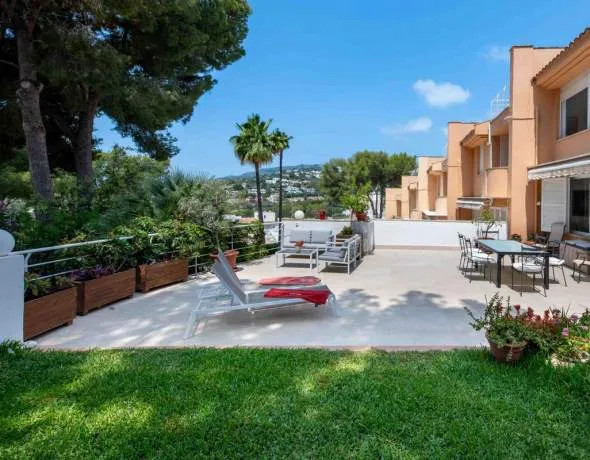 Exclusive corner semi-detached villa with stunning sea views, located in one of the most sought-after areas in the south-west of Mallorca, the heights of Portals Nous. Built on 257m², two habitable floors approx. 153m², the third floor is a 69m² roof terrace with panoramic sea and mountain views, it has three bedrooms. The property combines privacy, spaciousness and elegance in a quiet and exclusive setting. You can enjoy the south-west facing sunset from its private terraces, porch and garden. It has two entrances, either through the main entrance or through the garage, going up the stairs directly to the house. Direct access from its own terrace to the communal swimming pool. The community is private and very quiet with only six owners. The closed garage has two spacious parking spaces and a storage room of approx. 20m². Don't miss this opportunity to live a prestigious life in Portals Nous! Contact us for more details and to schedule a visit!