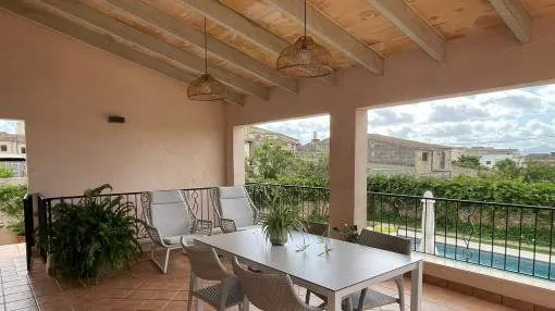 This well-maintained detached house is located in a quiet area of Vilafranca de Bonany, a charming village with good infrastructure. Nearby, you will find restaurants, local fruit shops (fruterías), and small supermarkets for everyday needs. Thanks to the convenient connection to the motorway, Manacor can be reached in just a few minutes, and Palma and the airport are also easily accessible.