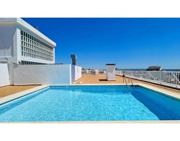The building features a pool, a communal terrace with stunning views of the bay, concierge service, and recently renovated facade. Amenities include underfloor heating, integrated air conditioning, and built-in wardrobes.